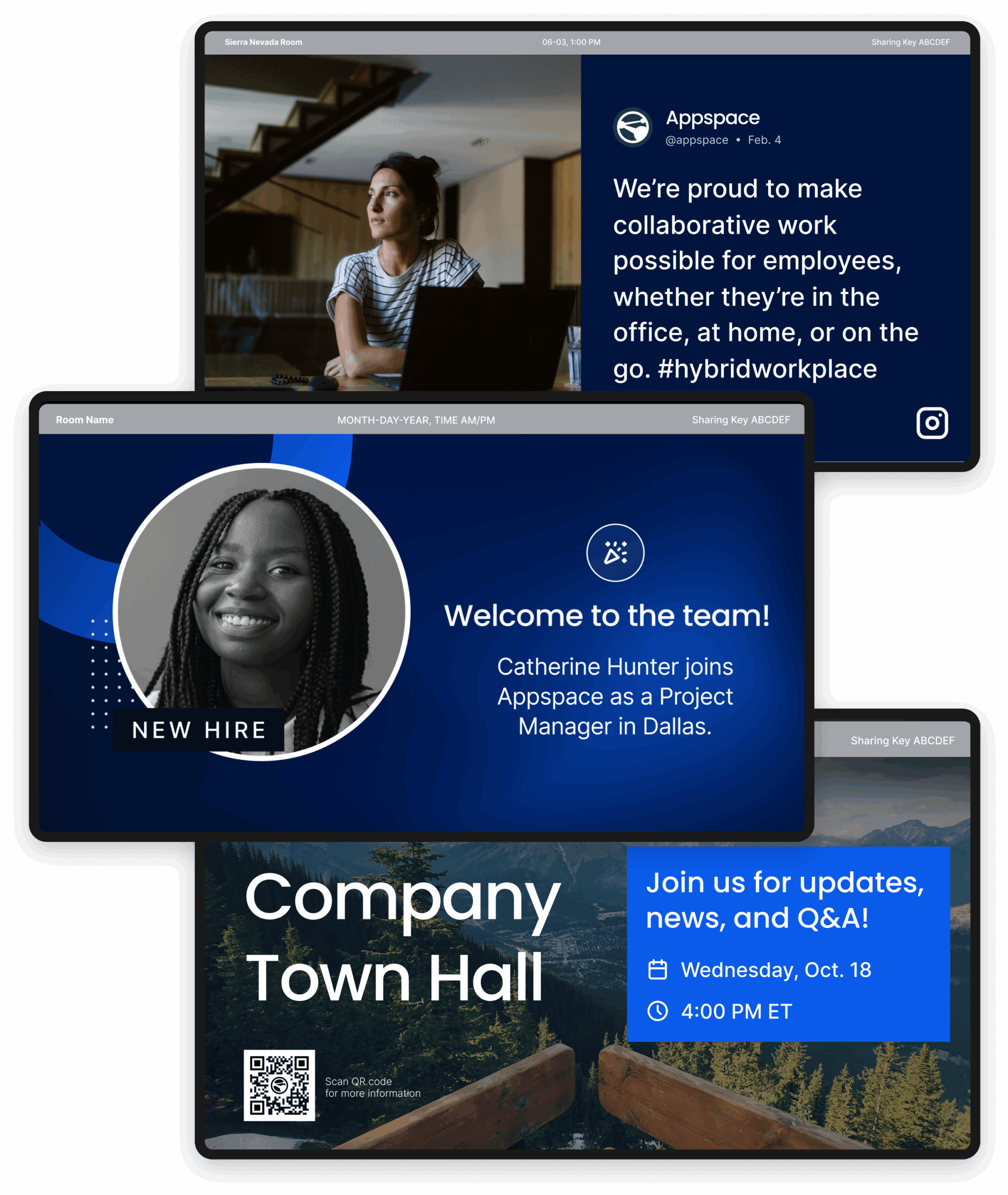 Appspace empowers your entire workforce with employee communications, digital signage, space reservation, visitor management, and more.