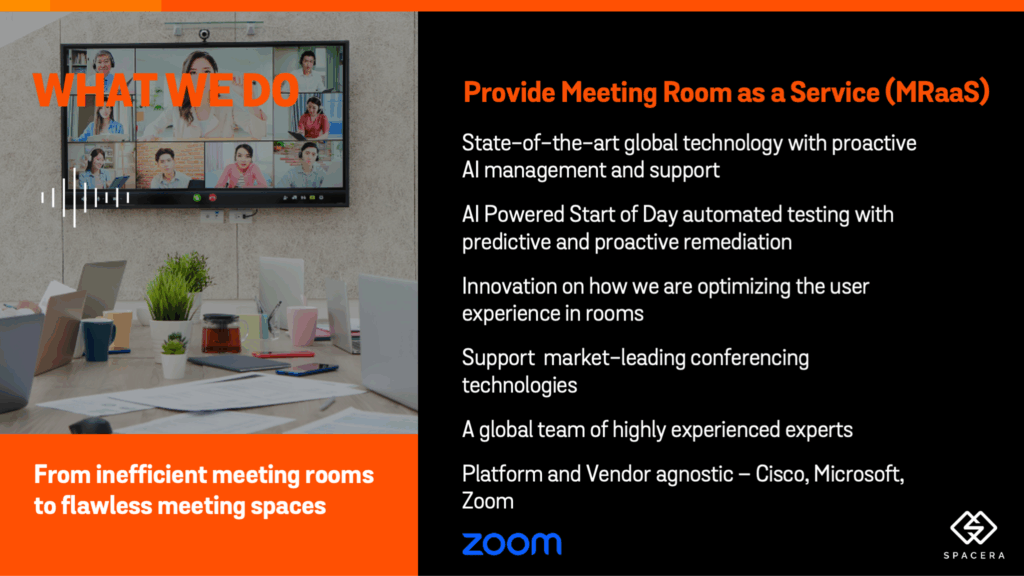 Together with Zoom, Spacera helps customers reduce downtime, improve employee satisfaction, and create high-performing collaboration environments across the globe.