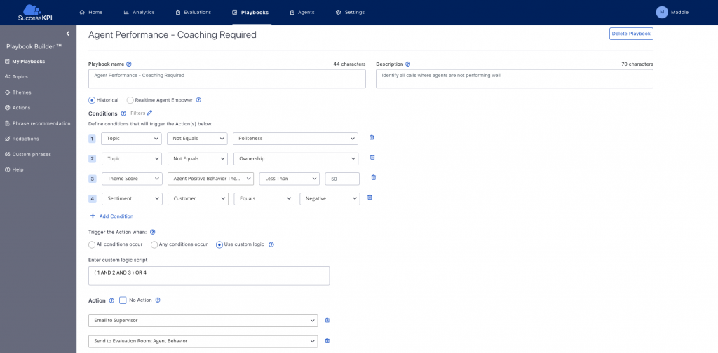 Build automated plays for critical action based on your customer conversations in real-time during the conversation, after the conversation, or based on triggers.