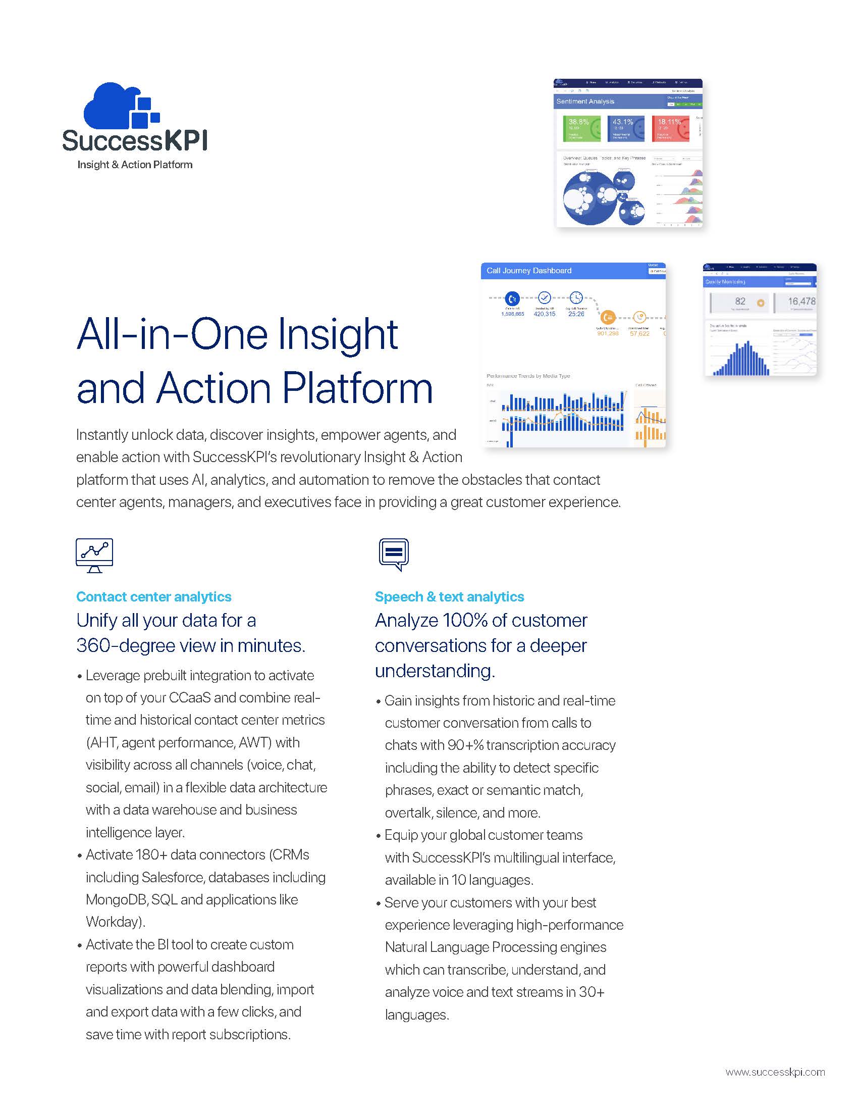 SuccessKPI is a revolutionary insight & action platform that uses AI, analytics, and automation to remove the obstacles that contact center agents, managers, and executives face in providing a great customer experience.